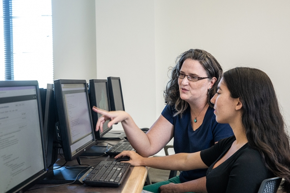 Setting this path in motion was Daza’s strong stance as a feminist and her interest in computer science that started in high school. She was always telling her friends, “programming is the language of the future,” but it wasn’t until coming to Rollins—where she was encouraged to explore seemingly disparate disciplines—that she began to understand how coding and data and analytics could actually help solve problems in the realms of gender and racial equality.