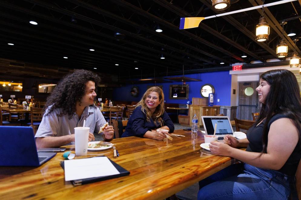 From their first days on campus, each member of the Sena/Doe family found their own way to get involved. Bobby leaned into his passion for politics and sustainability, becoming active in student government. Doe forged relationships with professors and her Pathways cohort while navigating two jobs and attending evening courses. And Topanga held internships with multiple creative agencies while maintaining a work-study position in the business department and serving as an EMBARK ambassador for the Center for Inclusion & Campus Involvement, where she has helped other underrepresented students acclimate to college life.