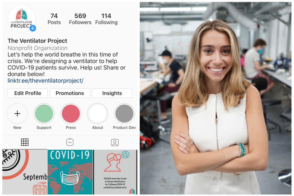 Communication studies major Julia Levin ’21 interned at The Ventilator Project, a startup that launched this past March to provide rapid, scalable solutions to the global ventilator shortage. Levin handled tasks in PR, digital marketing, and social media in an effort to build the nonprofit’s visibility, communicating with engineers and medical officials on a daily basis and developing relationships with like-minded nonprofits across the country.