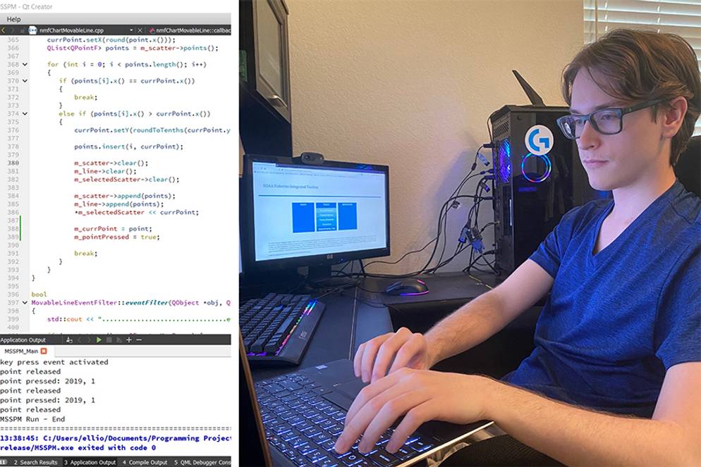 Computer science major Elliot Wurst ’21 worked as a graphics programmer focused on data-visualization tools for the fisheries branch of the National Oceanic and Atmospheric Association (NOAA), an opportunity he discovered through adjunct computer science professor Ronald Klasky. “I’m thankful for the small student-faculty ratio at Rollins because we can interact with our professors on a personal level. My relationship with Professor Klasky helped me get this internship, which has been such an important step on my path to pursue a career in computer graphics, data security, or artificial intelligence.”