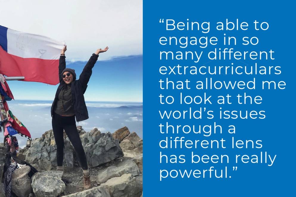 How Rollins has prepared me for a meaningful life and productive career “I took an Introduction to International Politics with political science professor Dan Chong, and I fell in love with the way he teaches. It’s a global perspective, thinking about helping fellow humans outside of your own sphere. It really encouraged me to minor in political science and got me interested in science policy.”