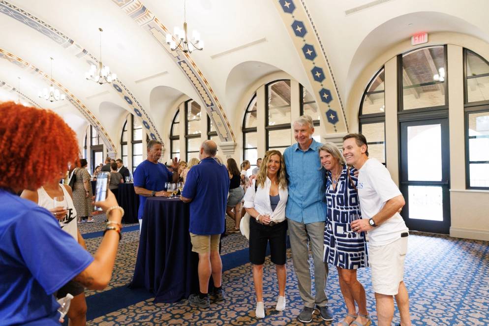 President Grant Cornwell and his wife, Peg, welcomed new parents and families into the Rollins community with a happy hour reception at Rice Family Pavilion.